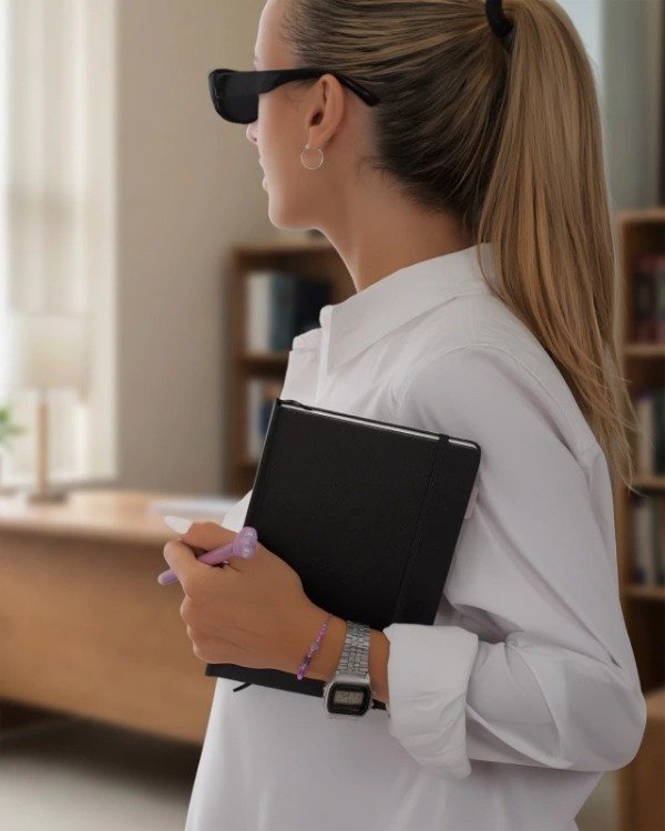 Textura que Inspira: Tapa con terminación glitter que no desprende brillos, solo refleja tu luz. Disponible en tres tonos icónicos: Negro (sofisticado), Plateado (futurista) y Lila (tendencia total).