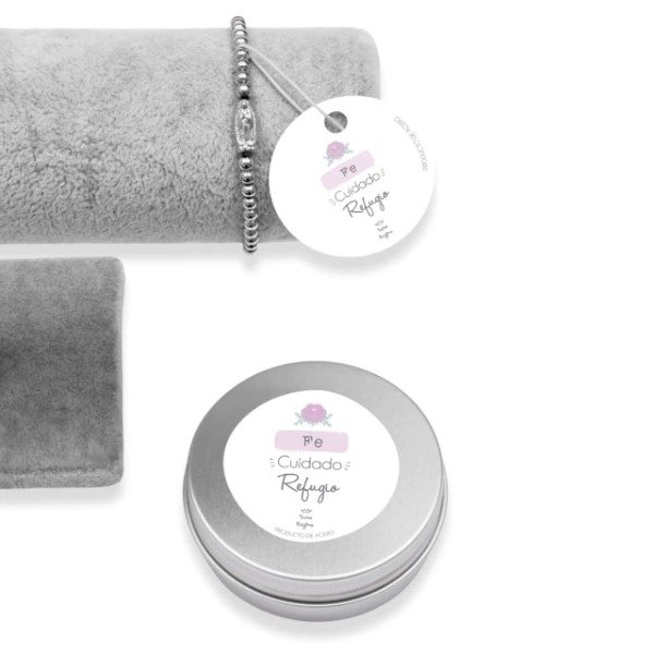 Pulsera elastizada de acero quirúrgico con un elegante dije de la Virgen de Guadalupe.